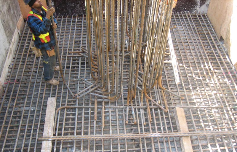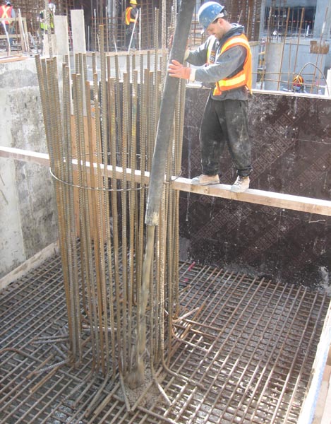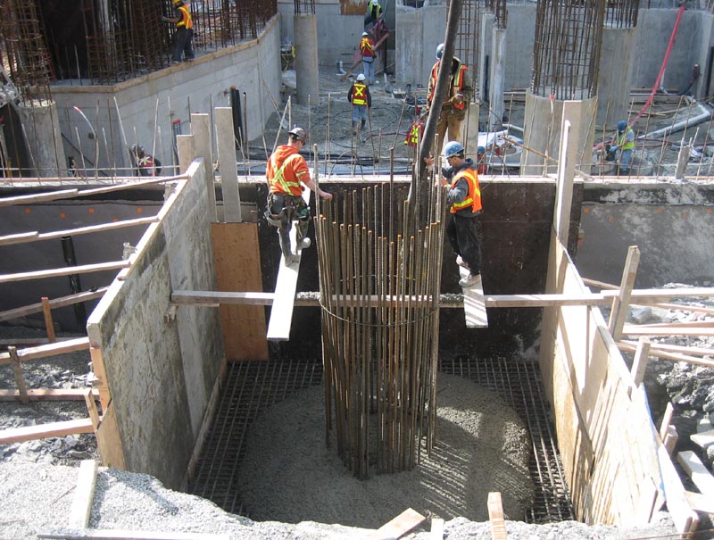 a Footing for a 50 level tower got poured, around 80 m^3 concrete, 40-35M dowels and 40-30M bottom Steel