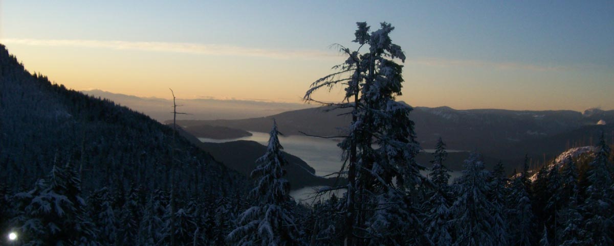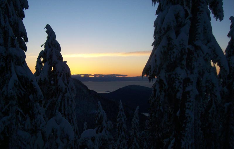 I went up at 4pm so the sun was going down already. View to the West, Howe Sound and Sunshine Coast.