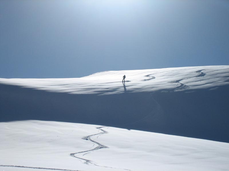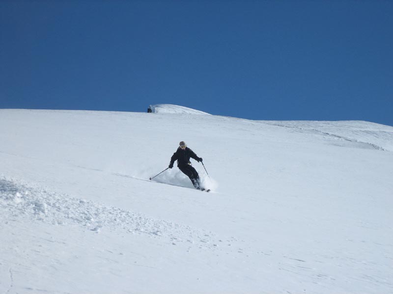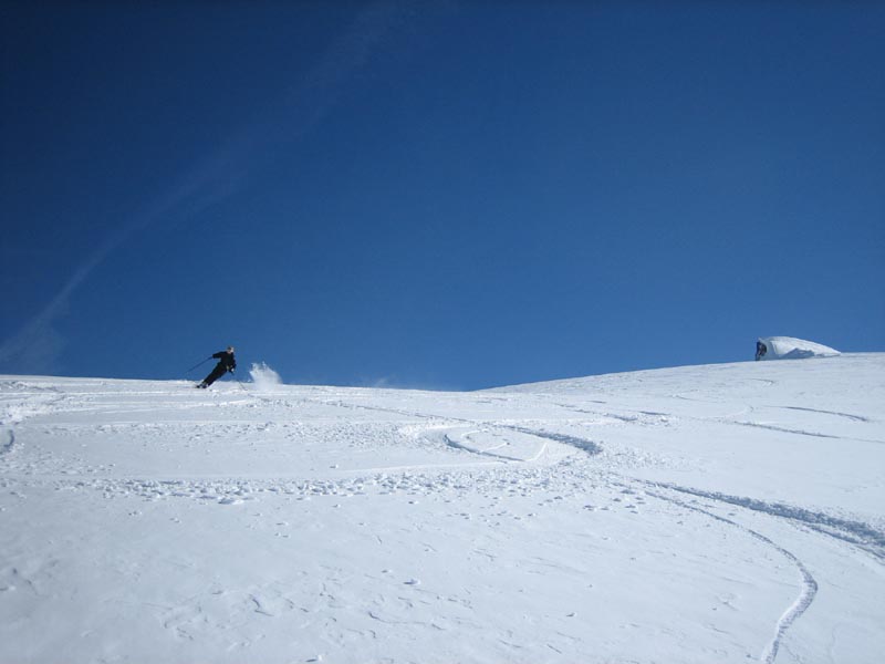 Skiing back to the Hut. Kerstin.