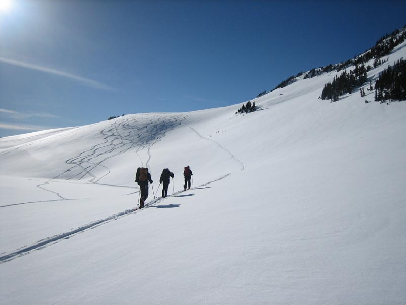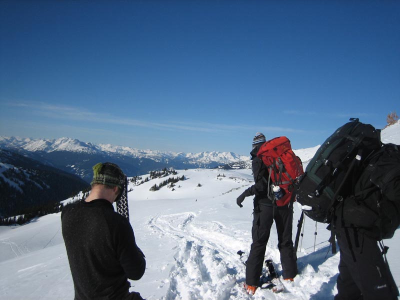 Putting on the big backpacks and skinning up for the last time this weekend.