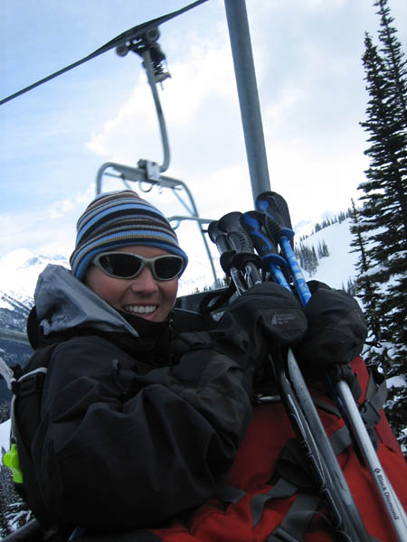 We took the gondola and a couple of chairlifts to make life easier. It isn't the easiest to load a chairlift with a 60L backpack. Kerstin still having fun.