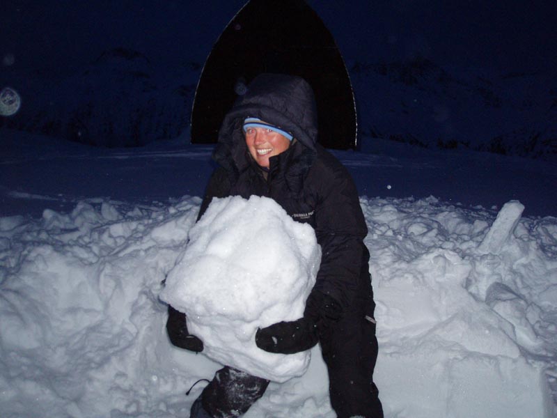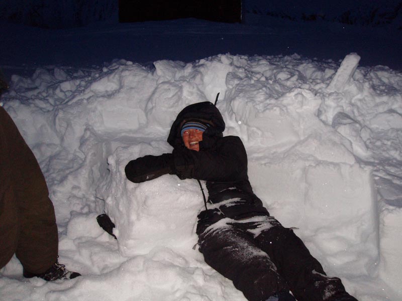 At some stage you couldn't get out or in the igloo anymore so we had to put a hole.