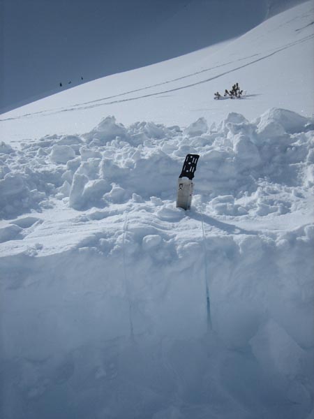 Seppel climbing out of it just before it collapsed. Mt. Fissile behind.