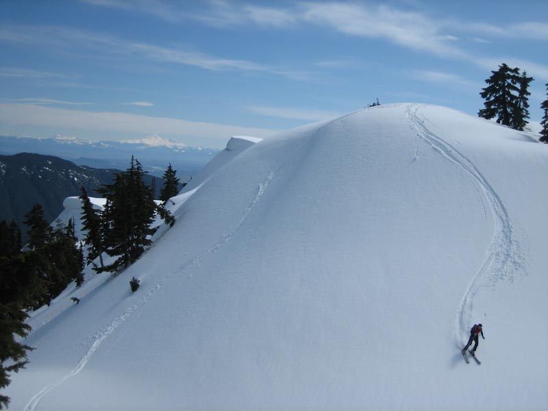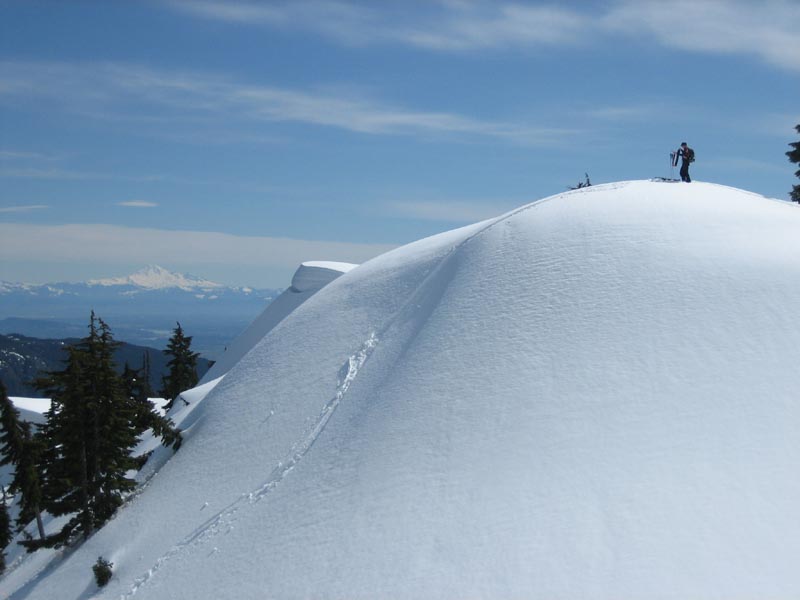 We continued a bit on the ridge. The snow wasn't amazing since it was so warm. The views were quite nice. This picture is looking north.