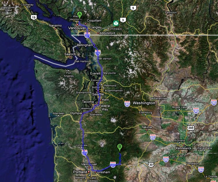 Skiing season isn't over yet. Since there are a bunch of high volcanoes close by (well, this one is about 650km away) we jumped into our car on Friday after work and drove down to the US. The drive was about 10 hours so we got to the camp ground around 4am Saturday morning. That's when the first people got up to climb the mountain, well, their plan was to do it in a day. We wanted to do it in 2 days and camp up high.