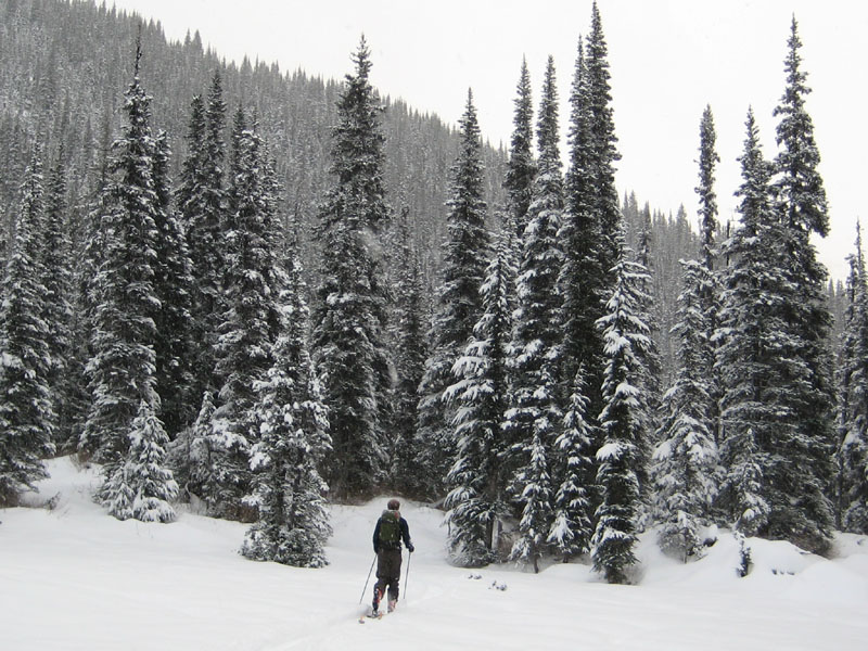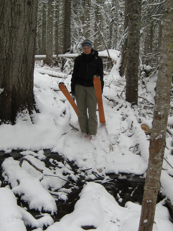 Skiing down the logging road. Well, we had to walk quite a bit due to lack of snow.