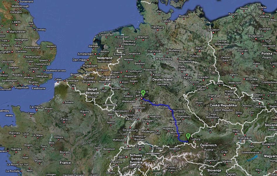 That was our route for the next two days. From Offenbach we drove via Bamberg and Nürnberg to Grassau.