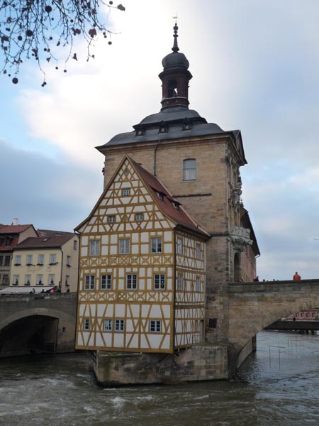 This is the old City Hall. Not like a lot of other German cities Bamberg wasn't destroyed during the war. This pic shows the old city hall in the middle of the river.