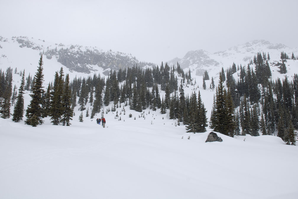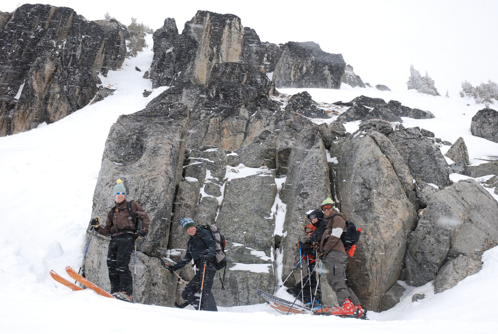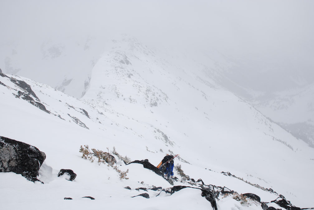 The last bit of the climb was a bit steep so we couldn't use our skis and skins anymore, instead we boot packed up the hill.