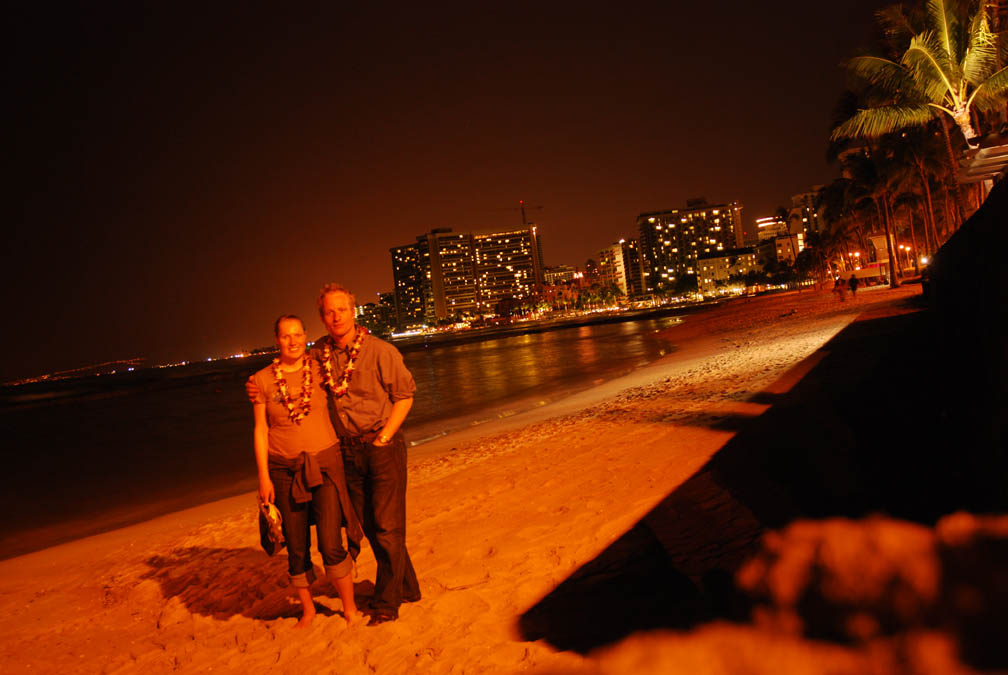 Hawaii! Well, everybody has heard about it and hence we always wanted to go there. Since it is not that far from Vancouver we did a 2 week vacation there. We flew to Honolulu on the island of Oahu where we met Regine and Uli (Kerstin's parents). Since we left after work we arrived quite late but not too late for a walk along the beach - Waikiki.