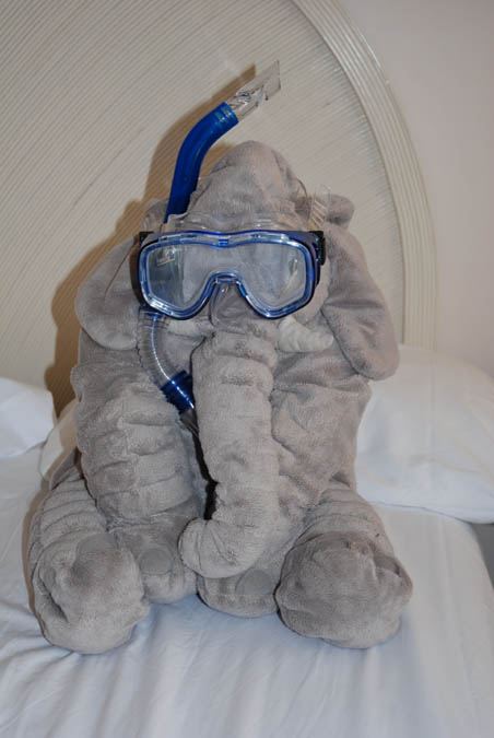 After snorkeling was so much fun the day before we got more gear and had a practice run in our hotel room, everybody took part. Jumbo enjoyed it as well even so he probably could use his trunk.