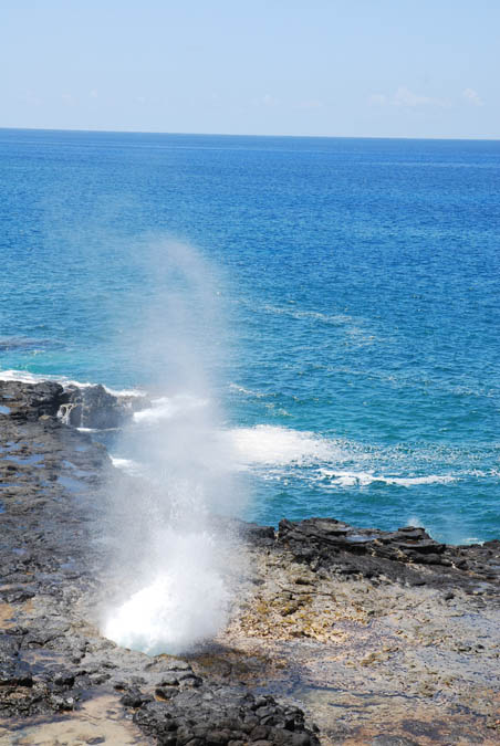 A blow hole. Water blows up through a hole and makes a kind of fountain.