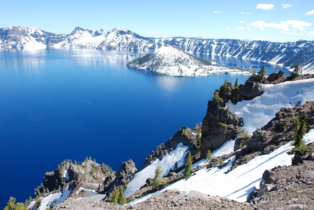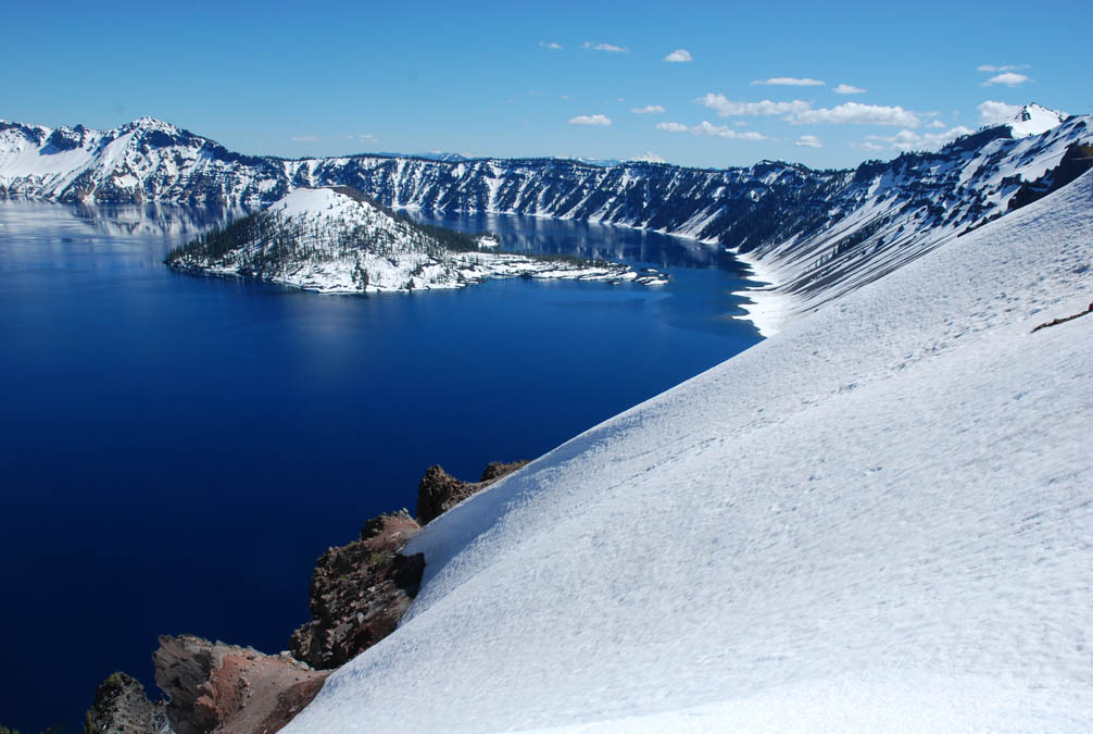 Crater lake is a big volcanic crater; in the middle there is a cone which has a crater as well, pretty neat. There is no river running in or out of the lake.