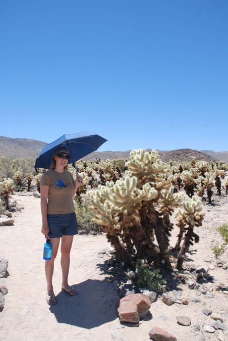 A umbrella, well, guess why! Oh, and our car doesn't has air conditioning. Joshua Tree is a desert so the first thing we saw were some cactuses.