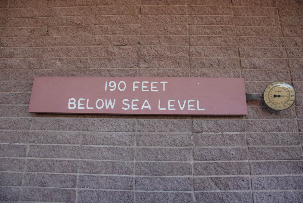 Death Valley is not only hot it is also below sea level, 190 feet = 57 m.