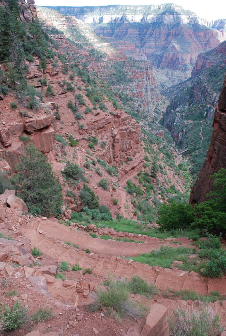 We decided to go for a 3 day hike down to the Colorado river. The first day we only had to hike down 1200 m elevation in 7 miles, the second day we hiked to the river and back to camp (14 miles and 500m elevation, first down and then up) and the third day we hiked out.