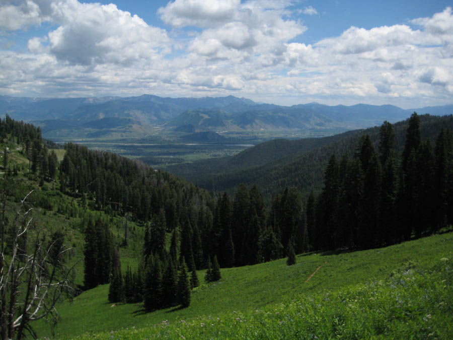 On top of the pass looking down to Jackson standing at 9200', 2760 meters or so.