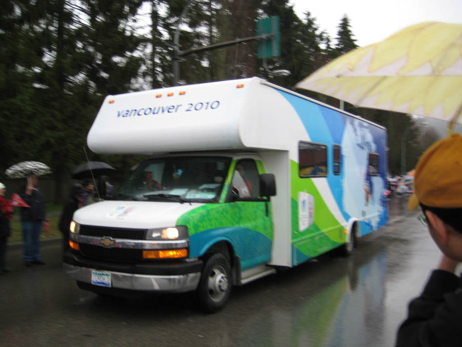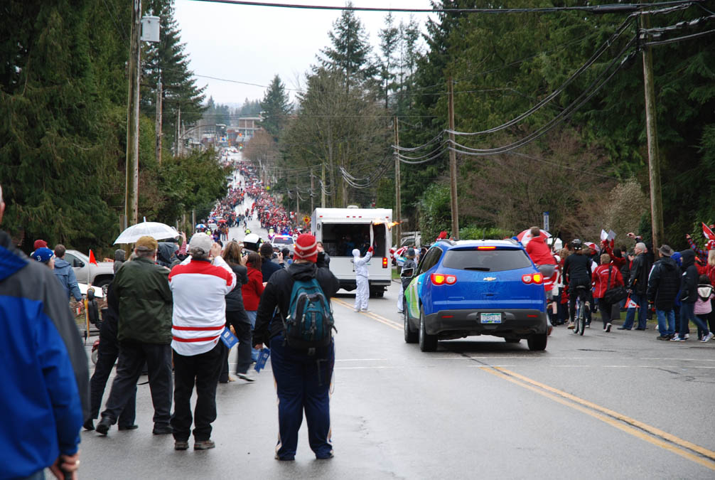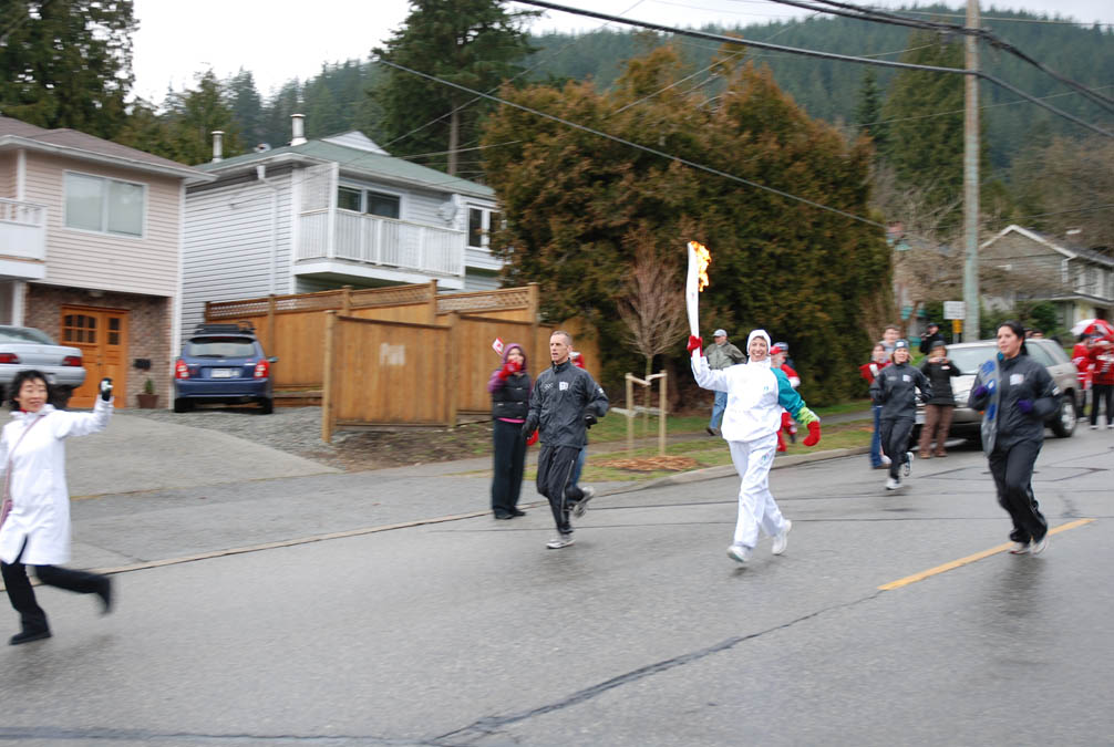 It was pretty busy on the roads. School kids had the day off or went with the whole class to the street to watch the torch. Every 400m or so the runner changed.