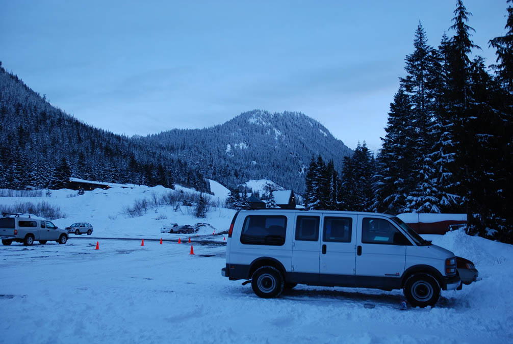At the end of the day we had a snack at the ridge with an amazing view of Mt. Rainier and Crystal Mountain Ski Resort where we would ski tomorrow.