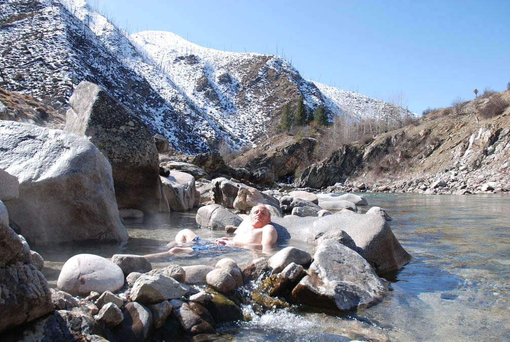 Sitting in hot springs and seeing snow in the mountains is kind of cool.