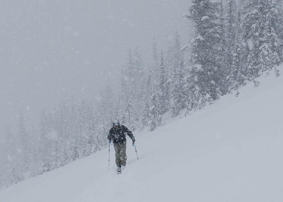 We met Dan with whom Seppel was skitouring back in February at Keith hut and he showed us a bit around in the Canadian Rockies. A storm went just through so there was lots of snow, at some places up to 60 cm, insane, especially considering that we are in the Rockies and it is April. When I met Dan first he told me that it is always blue sky and a big snow fall is 10 cm, well, it was a bit different today.