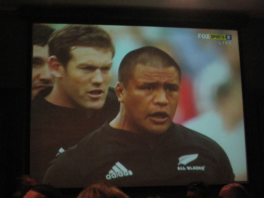 Before the game the Haka was performed by the All Blacks (the New Zealand team). The Haka is a a war dance to intimidate your enemies back in the day. Now it is used to intimidate the other team. Probably a bit of a show as well.