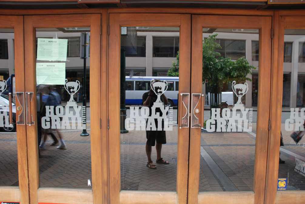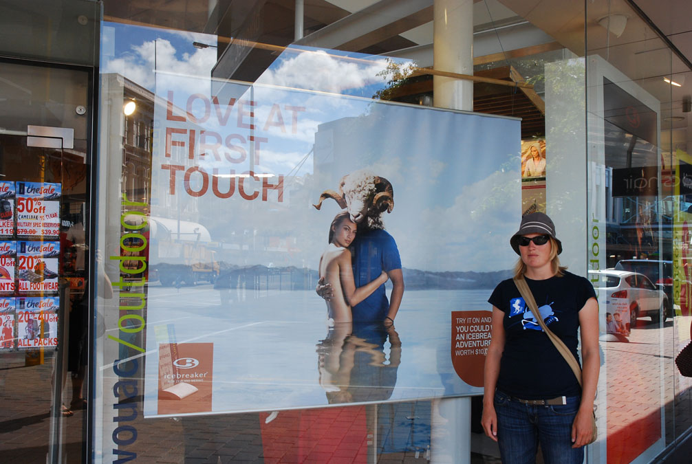 We had to do a bit of shopping in downtown (no real shopping, just gear shopping for our upcoming trip to the Southern Alps) and we saw this poster which, Kerstin thought, a good friend of us, Sarah, designed.