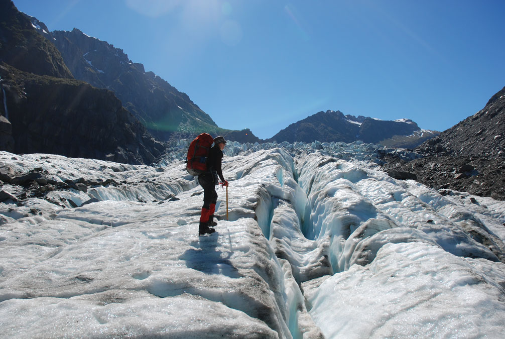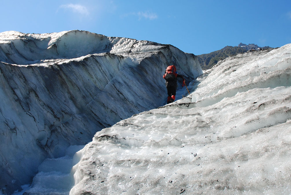 I came here twice 8 years ago. It is one of the few places on earth where you can start walking on a glacier at around sea level (200 meters) unless you go up really far north or south (to the poles). What impressed me the most back in the day was the quick change from a landscape covered in thick bush to glaciers, crevasses, ice falls and snow. We packed our backpacks full of food for 5 days so they were pretty heavy to start with.