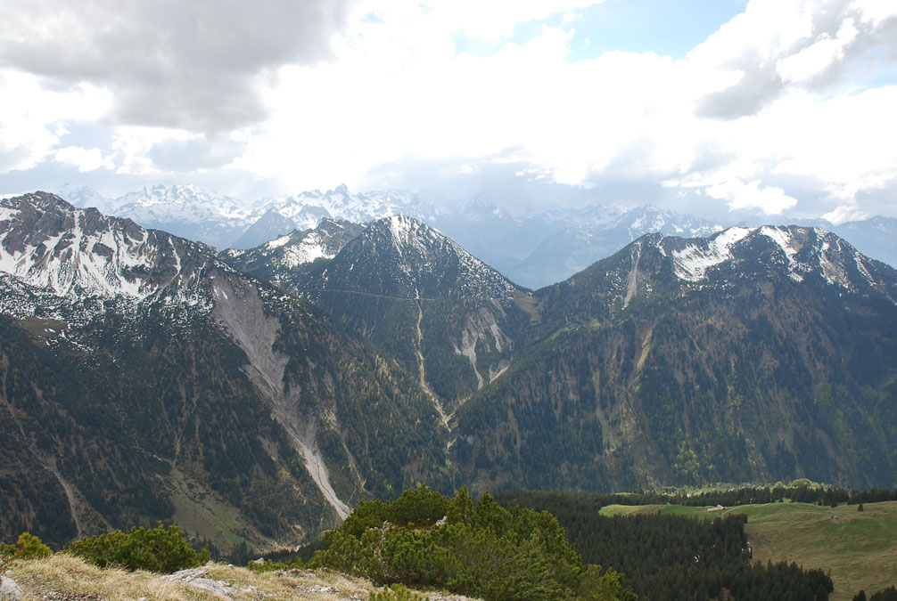Theresia, Claudia, Claudia's boy friend and another friend of them stopped at our place on the way home from Davos where they stayed for a week. We drove 15 min. up to the Großes Walsertal where we went for a hike.