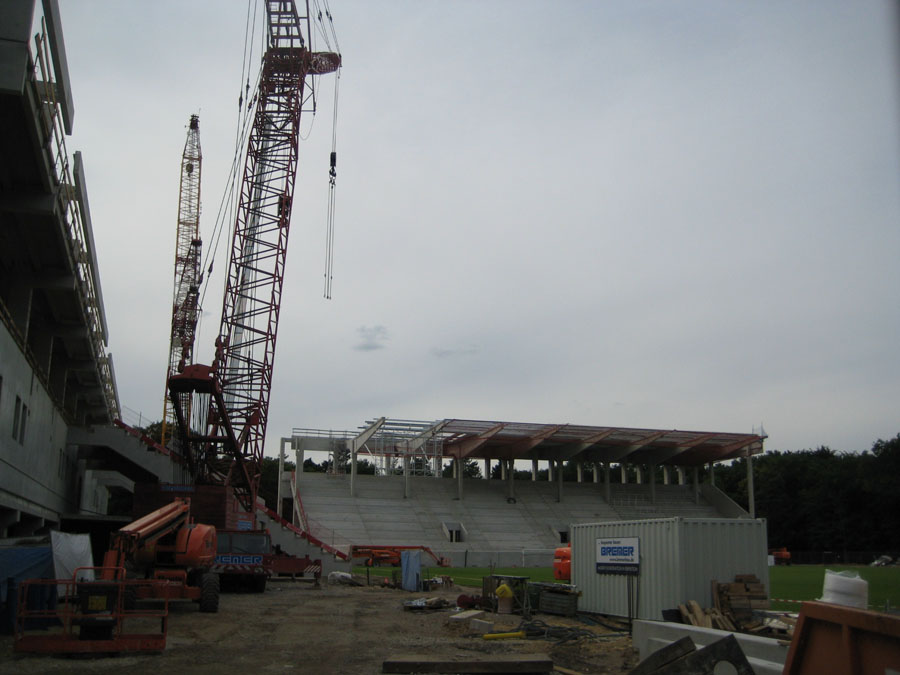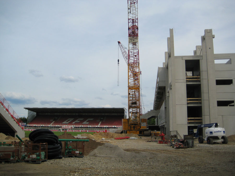 On the way home we stopped at Kickers Offenbach, my soccer team. The get a new stadium so lots of construction is happening. The cranes they use are Liebherr LHR cranes.
