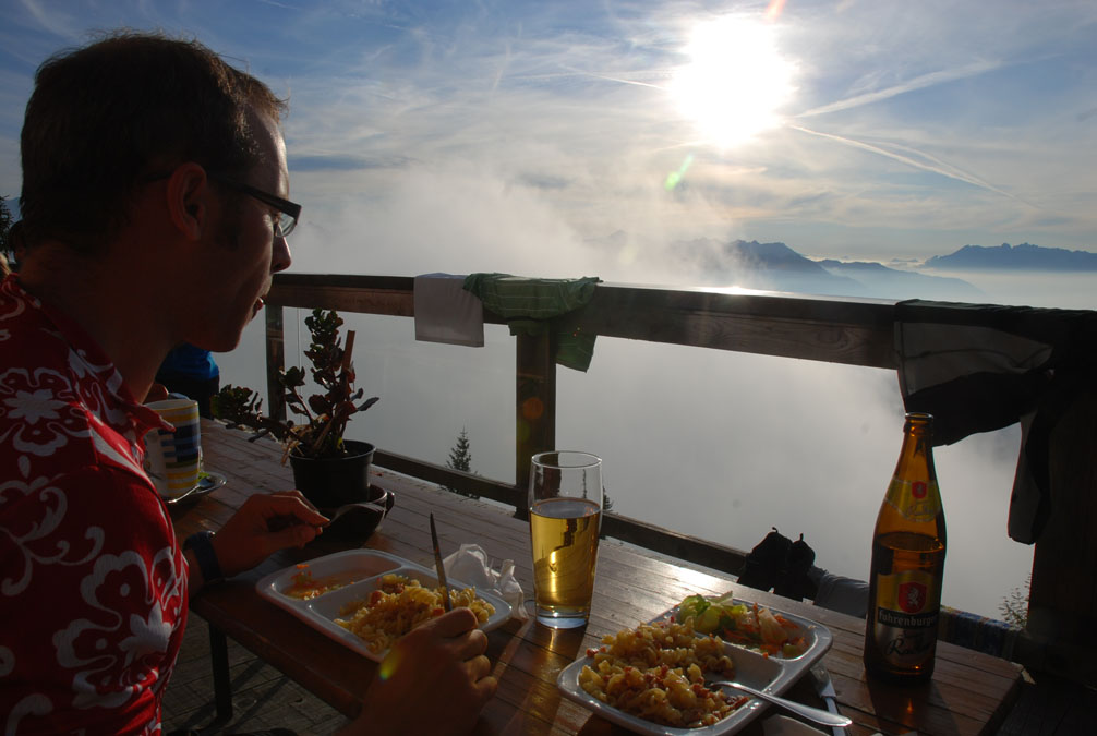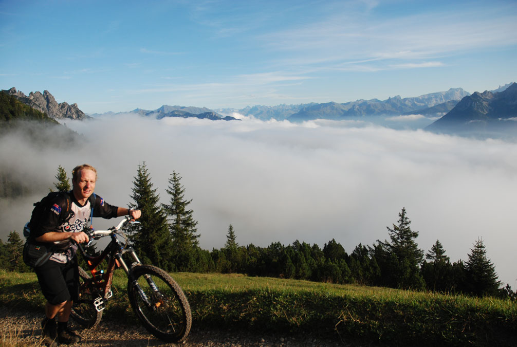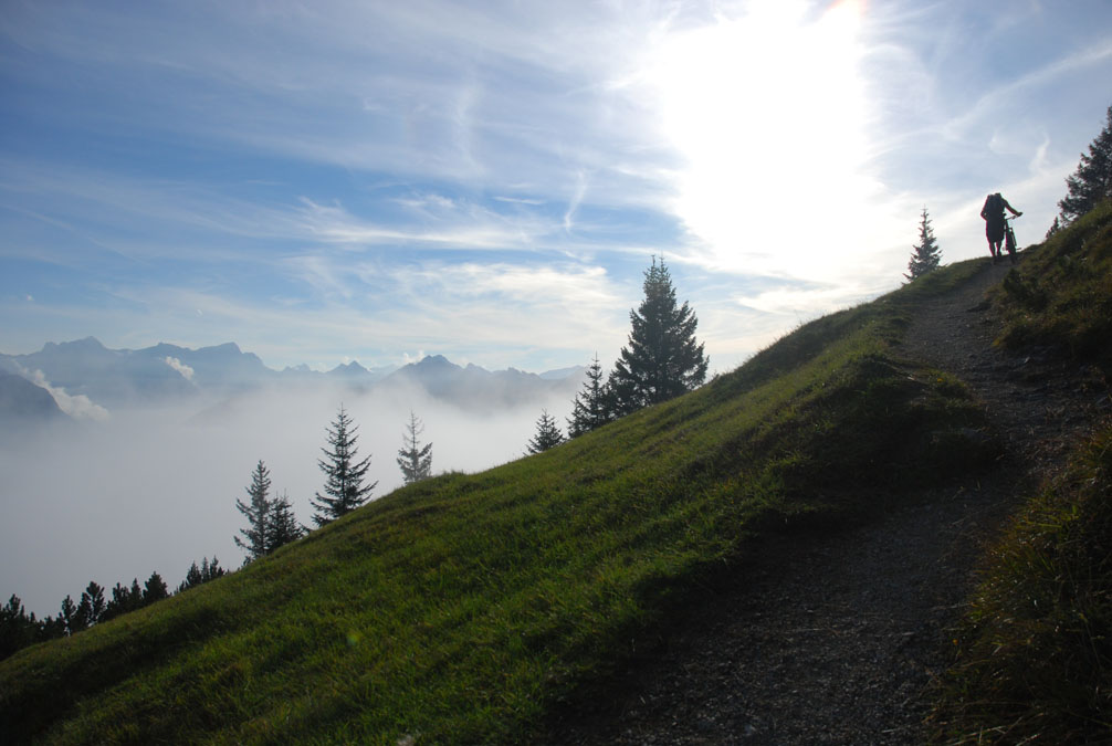 I heard it is famous to have after work parties in big cities like New York or Berlin. We, my work mate Alex and I, decided to have another type of after work party, Bikebergsteigen. Since our office is right in the middle of the alps we can almost jump on our bikes at work.