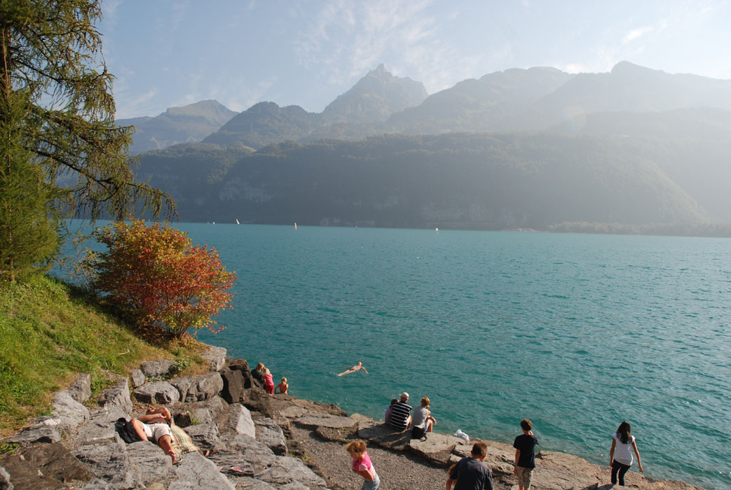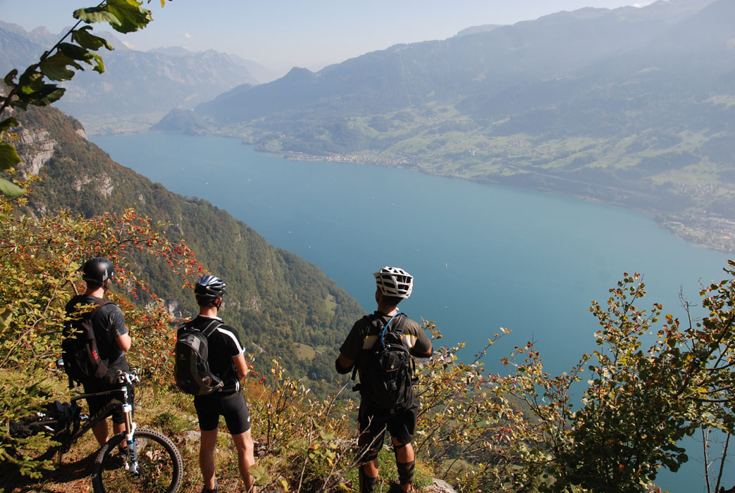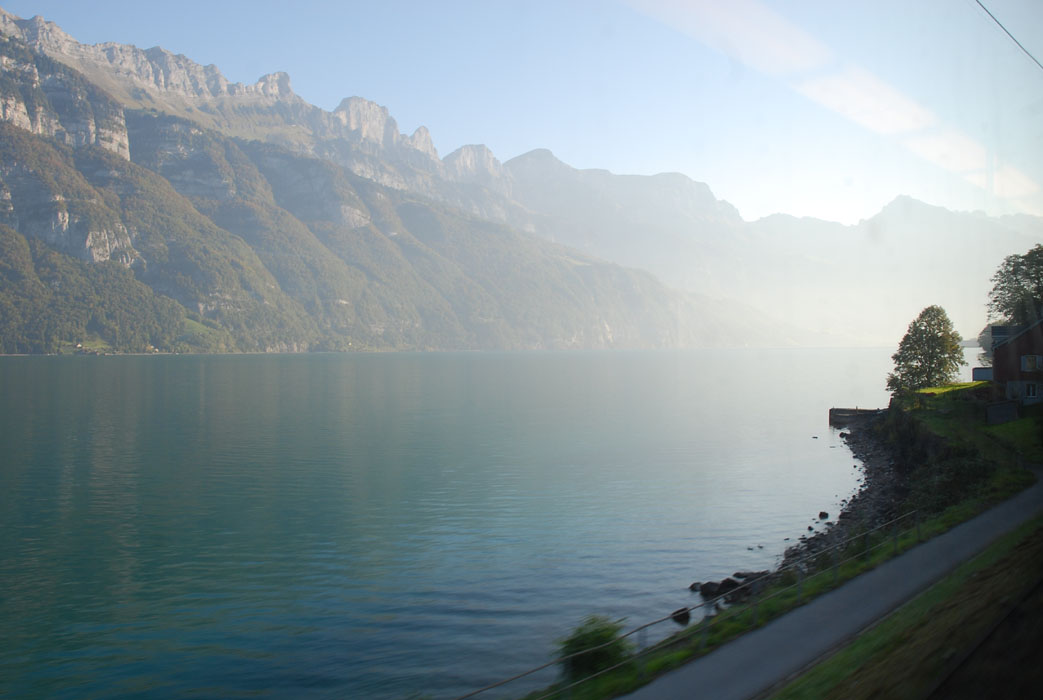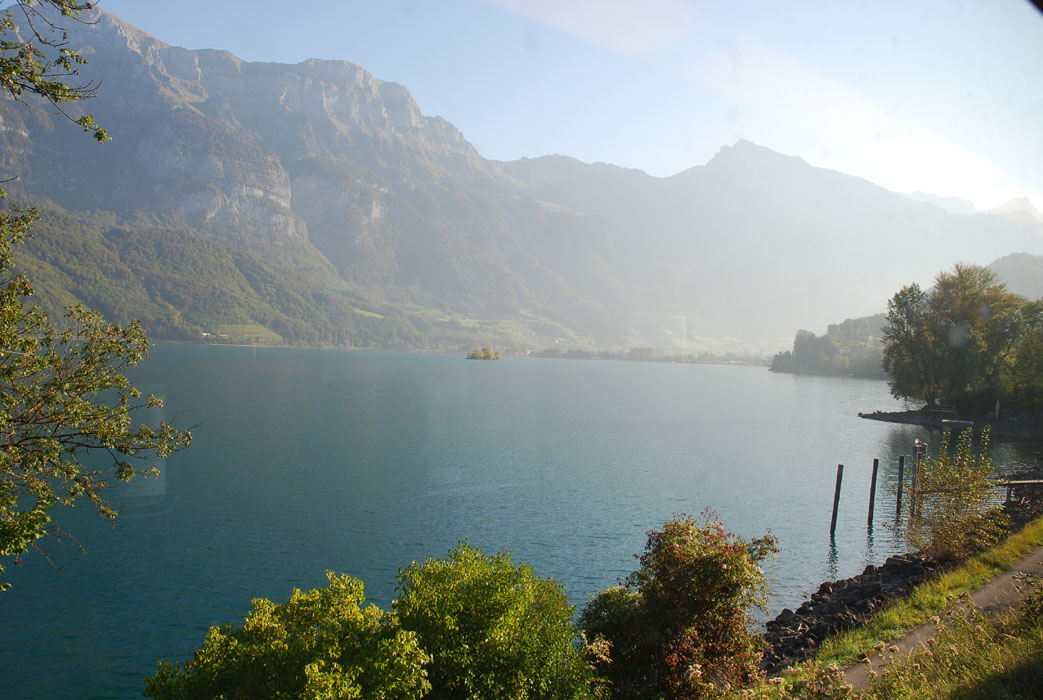 Peter and Martin organized a riding trip in the swiss alps. Our aim was Wallensee which is about 30 min. away from Feldkirch. We would ride from the east side of the lake to the west side so I caught the train in the morning and left my car at the west side.