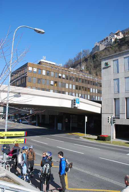 Some people come here to bring money, we came to go biking with my work mate Alex and his friends. Even so it is winter it is pretty warm and there isn't much snow. First we drove to Vaduz with the car. There we caught a public transport bus to gain about 800 m in elevation, pretty easy. Anyway, sit back and enjoy the pics.