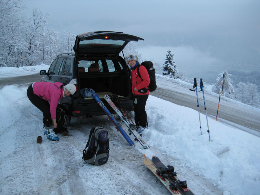 Since we are members of the alpine club of Austria now, I decided to join a group to go skitouring. We started early to be back in town for lunch. We climbed to the peak called Loischkopf in Bürserberg.