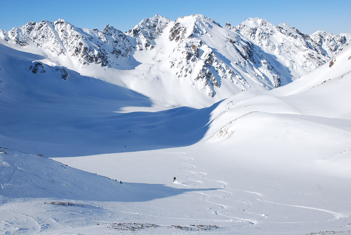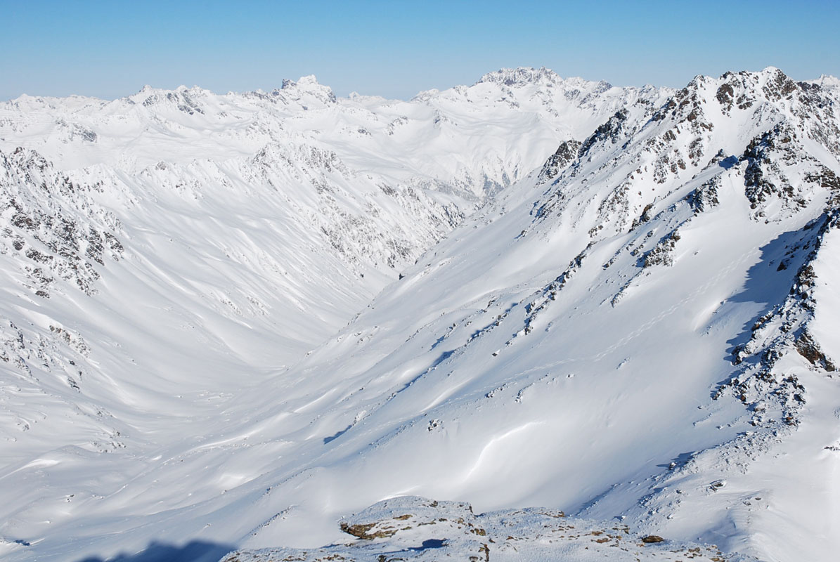 The valley we would ski out later on.