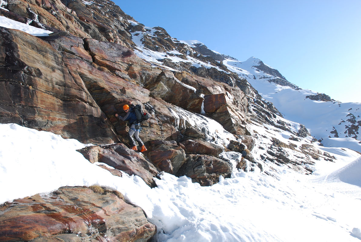 After this filling breakfast (potatoes with meat) we started touring. First we had to do some climbing sections.