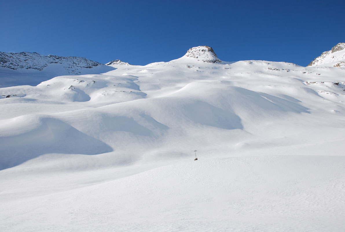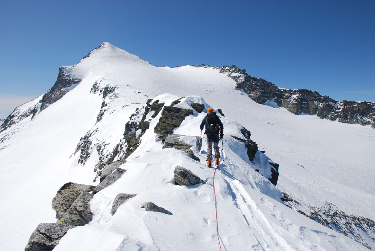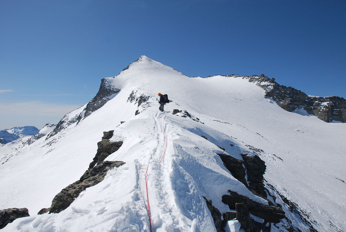 There were sections where you couldn't place a pole, you just need to balance on your skis, downhill skiing with skins on a narrow ridge are not my favourite routes.