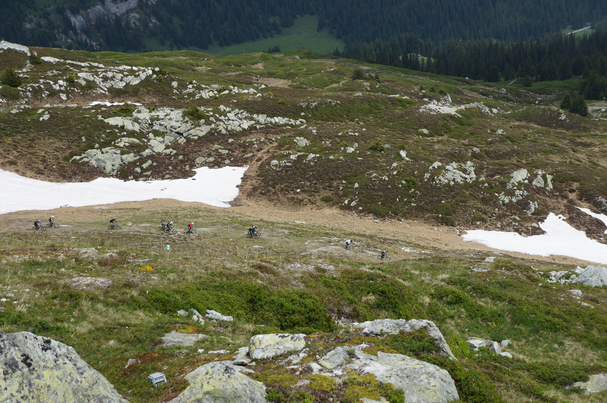 Alex and I signed up for a race event in Flims Laax. The event were three different races on three days. It started with a night race on Friday night, a short fairly technical race with stunts on Saturday and a downhill race on Sunday. It was good fun but we recognized that we got a bit too old for that stuff and we do enjoy normal riding in the nature without another hundred dudes a bit more.