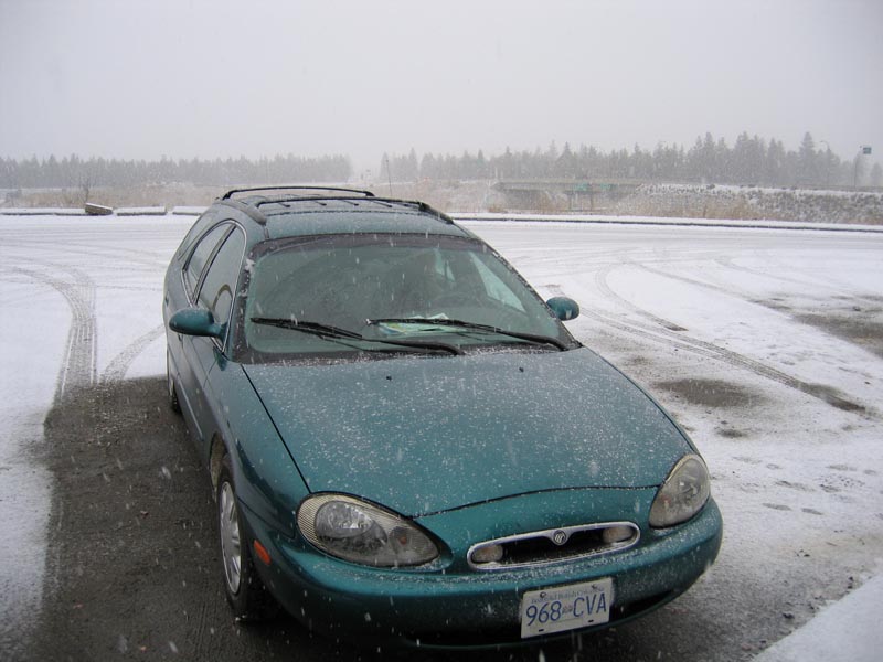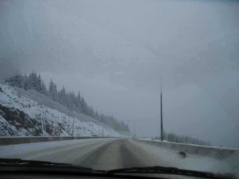 soon after Hope (that is a town about 150 km's away from Vancouver) we hit the snow