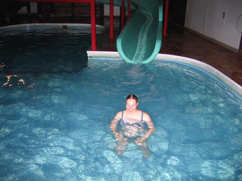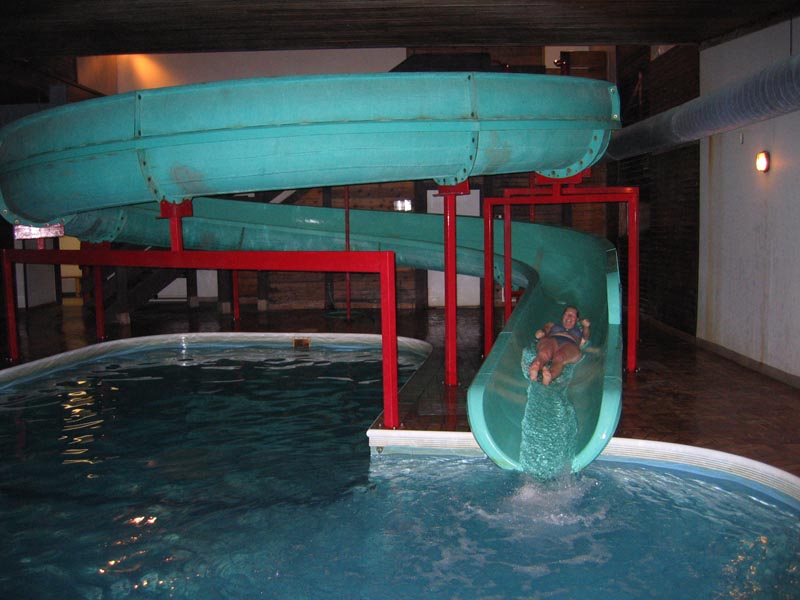 our evening attraction: swimming pool with a waterslide and a hot tub