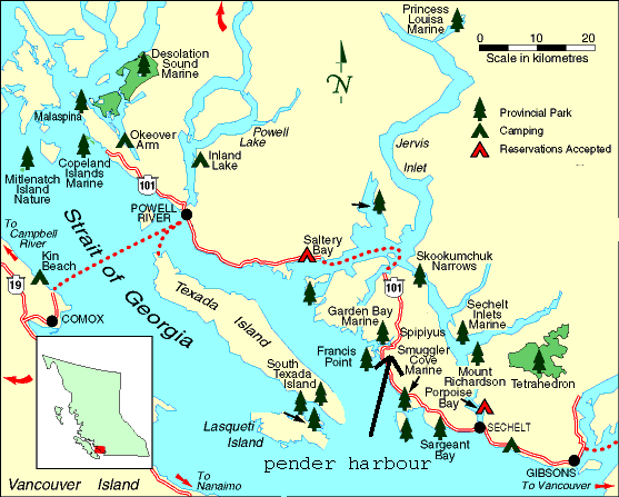 Narrows Provincial Park in Egmont at the north end of the Sechelt Peninsula