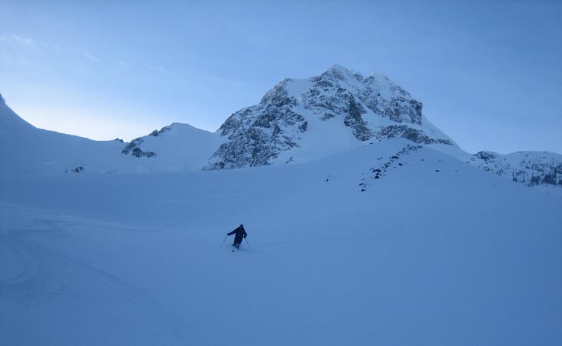 we didn't do a lot of downhill runs. the one we did was just amazing in so much snow. Andrew skiing down.