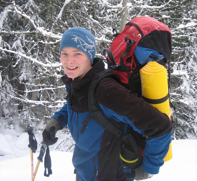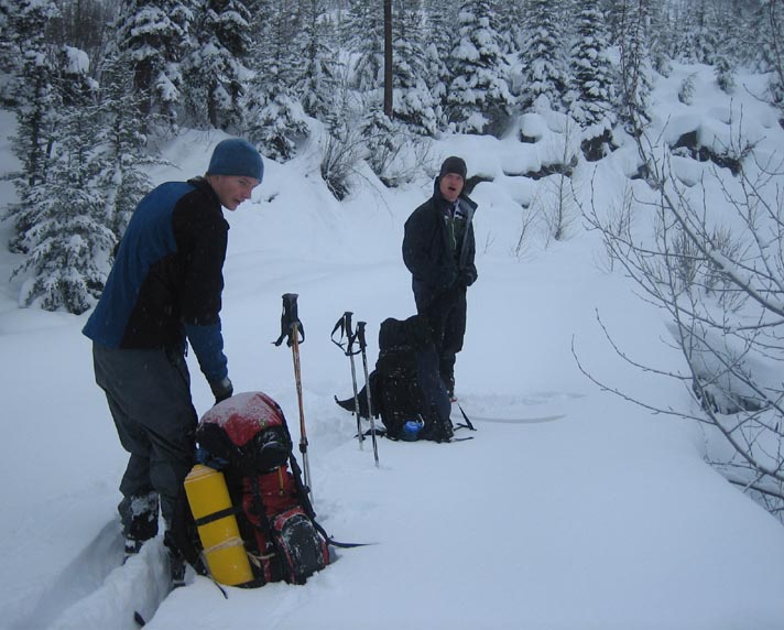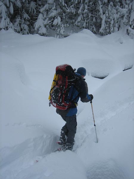 The ski season started a long time ago but finally we rented gear from MEC (we still don't have our own bc gear) and drove up to Pemberton (North of Whistler). There was a lot of snow, 80 cm of fresh snow said the snow report. Well, we rented out our gear at the beginning of the week so we had paid already. I talked to a friend and he told me that they have never reached the hut before sunset. We drove friday night to Pemberton and stayed in a youth hostle. Saturday morning we started to ski up, it was hard work ...
