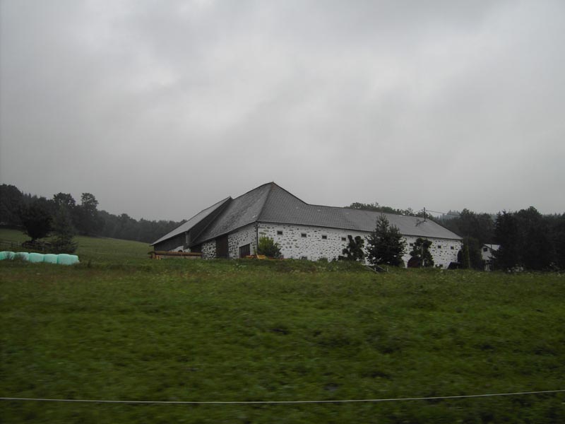 on the way to czech rupublic, typical farm building with big rocks in the wall