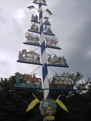 nice church, a typical maibaum on the right